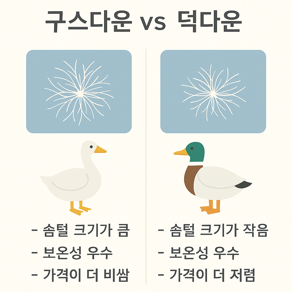 2. 천연 충전재 — 구스다운 vs 덕다운