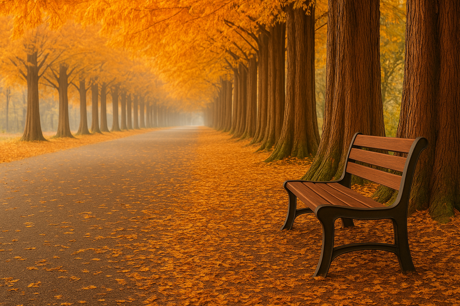 - 사진 촬영 포인트는 길 중간의 ‘벤치 구간’과 ‘황금빛 낙엽길’입니다.