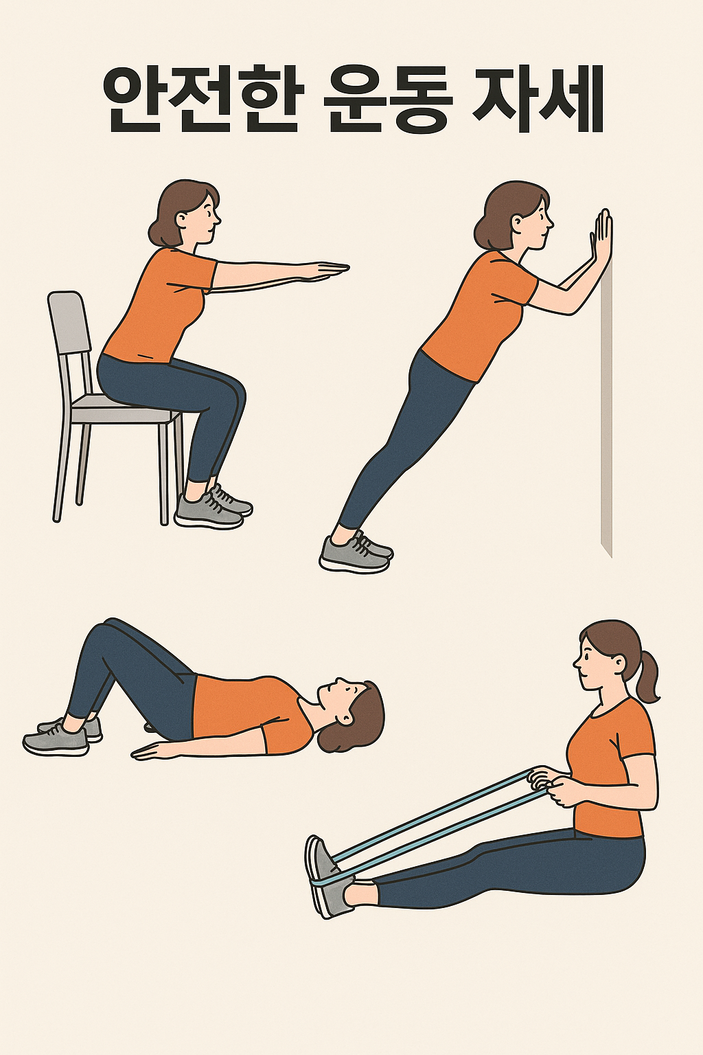 중년 여성은 근육량·관절 유연성·회복 속도 모두 젊은 시절과 다릅니다. 따라서 '무조건 열심히'가 아니라 ‘부상 위험을 낮추는 형태’의 접근이 필요합니다.