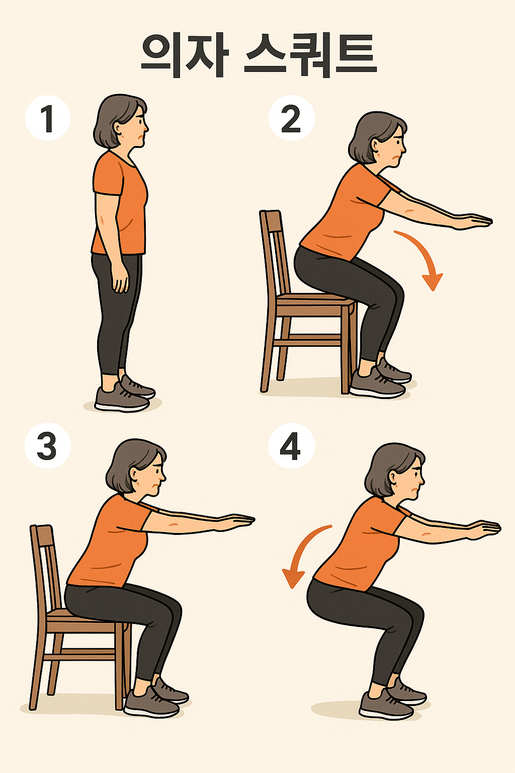 무릎·허리 부담 없이 하체 근육을 안전하게 강화할 수 있는 기본 동작입니다.