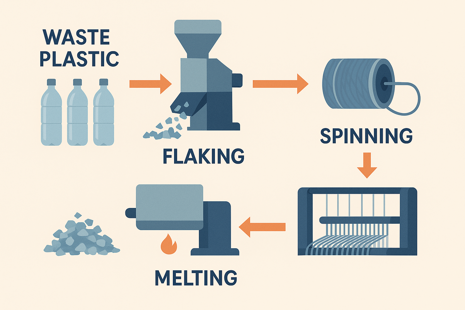 세척·파쇄·용융 과정을 거쳐 실 형태로 뽑아내는 구조로, 에코백·재킷·패커블 제품 등에서 광범위하게 활용된다.