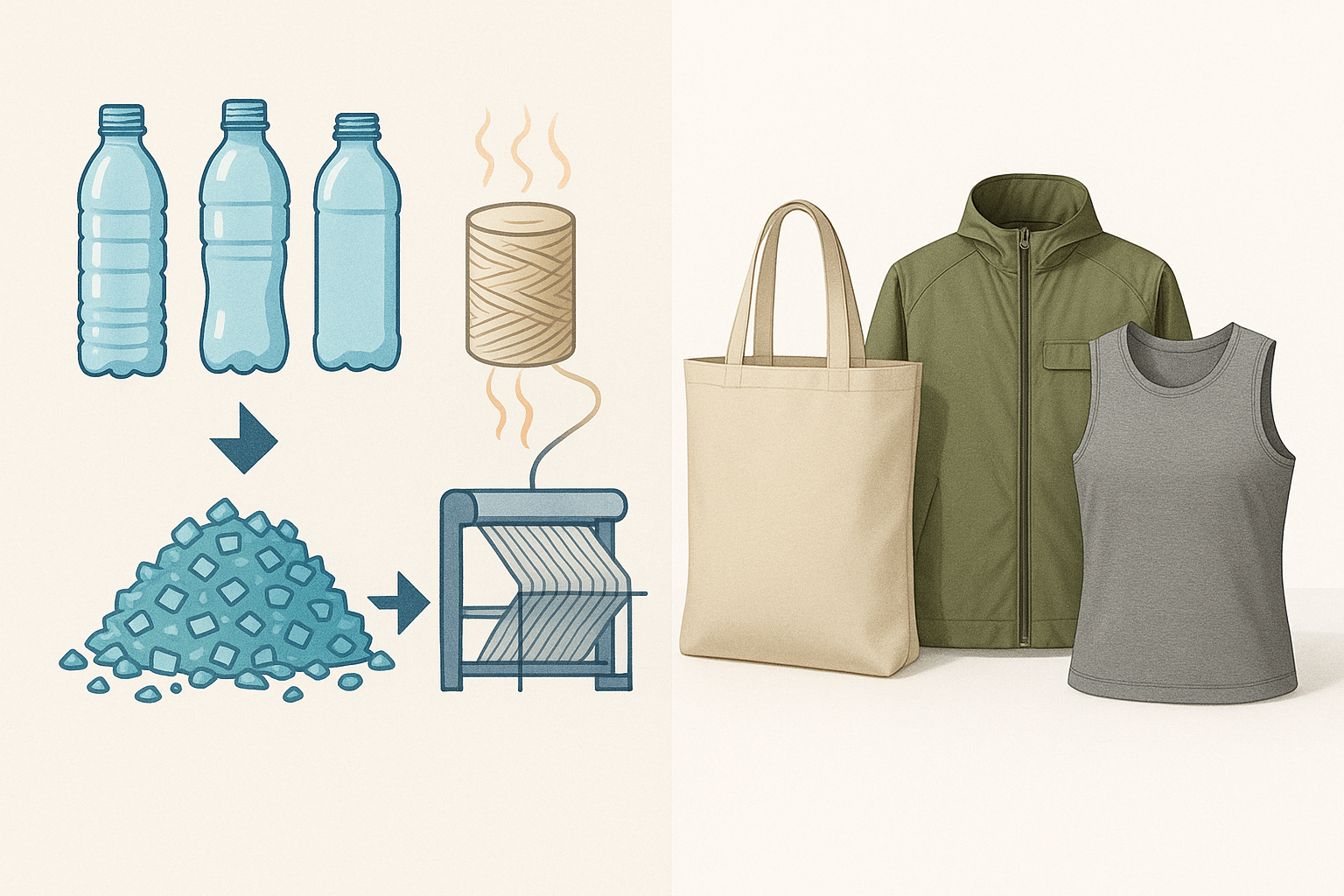 세척·파쇄·용융 과정을 거쳐 실 형태로 뽑아내는 구조로, 에코백·재킷·패커블 제품 등에서 광범위하게 활용된다.