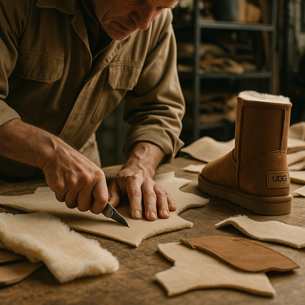 • 미국 UGG: 글로벌 소싱을 통해 양가죽과 양모를 공급받습니다. 대량 생산 시스템 속에서 균일한 품질 관리와 안정적인 물량 확보가 핵심입니다.