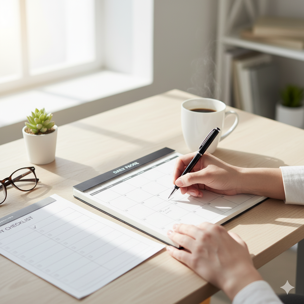 - 매일 아침 오늘의 목표를 기록하고, 끝을 떠올리며 하루를 설계하기