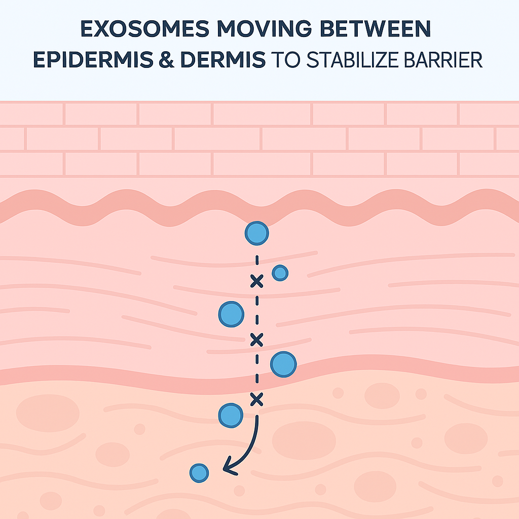 엑소좀이 표피와 진피 사이를 이동하며 장벽을 안정화하는 인포그래픽