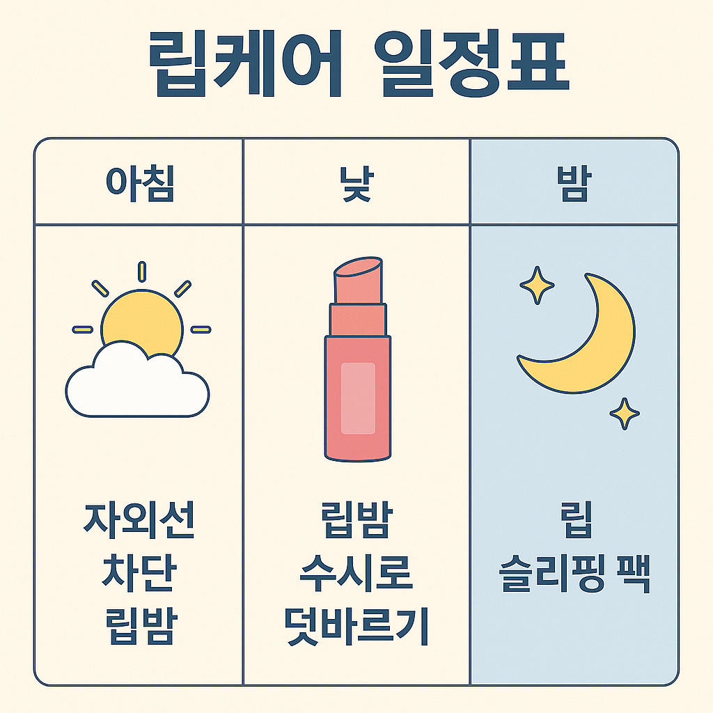 입술 관리의 핵심은 수분 공급과 보호막 형성입니다. 립밤 하나만 바르는 것보다, 단계별로 접근하면 훨씬 효과적입니다.