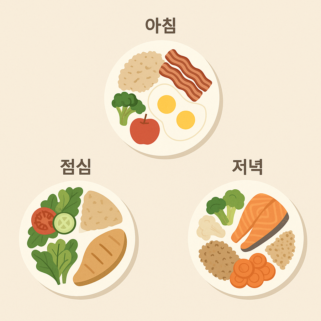 하루 세 끼 식단 구성을 시각적으로 보여주는 다이어그램형 이미지